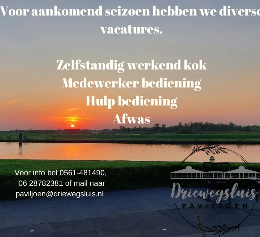Wij hebben momenteel verschillende vacatures, reageer met je motivatie + CV naar paviljoen@driewegsluis.nl. Onze openstaande vacatures: -Zelfstandig werkend kok -Medewerker bediening -Hulp bediening -Afwas Bekijk hier de…